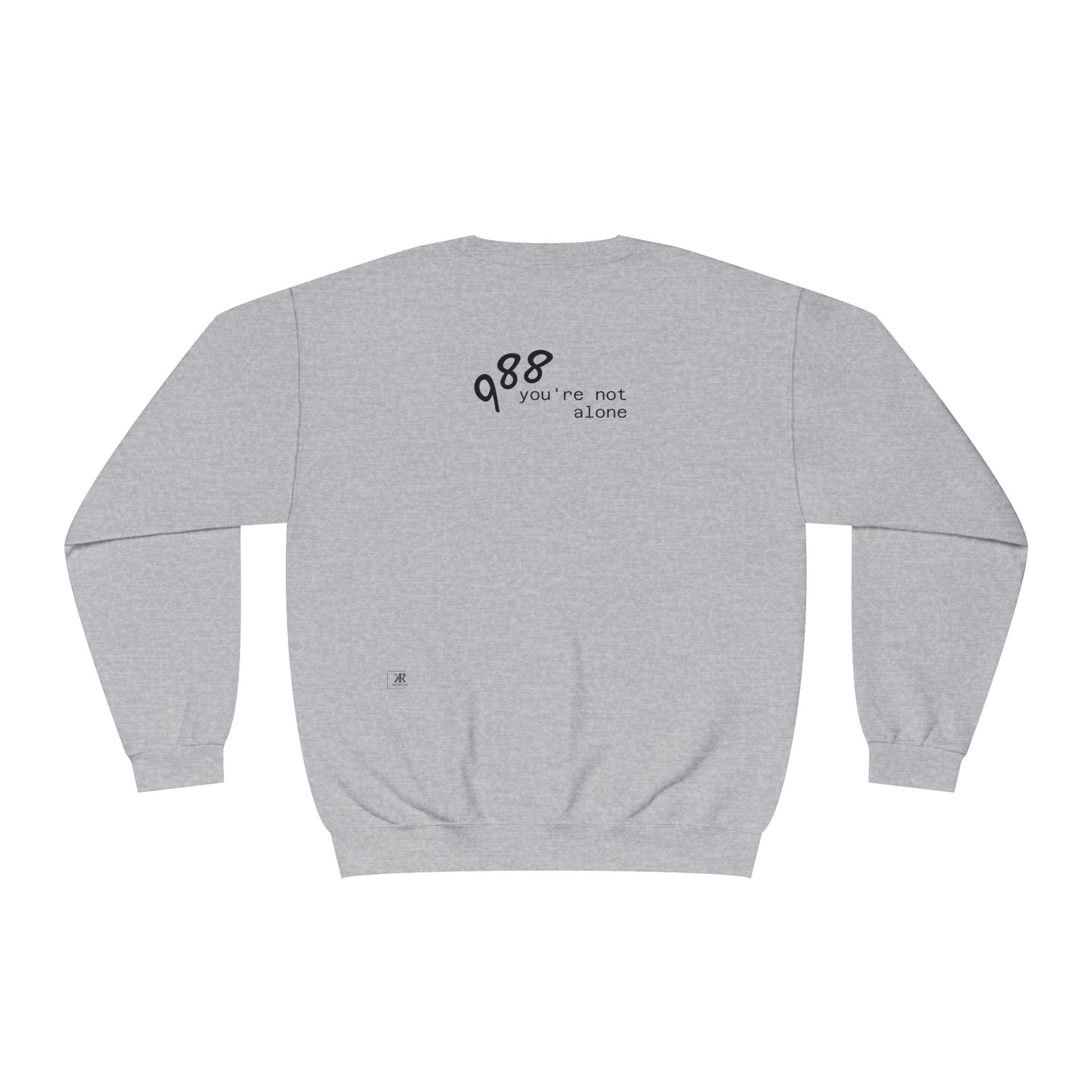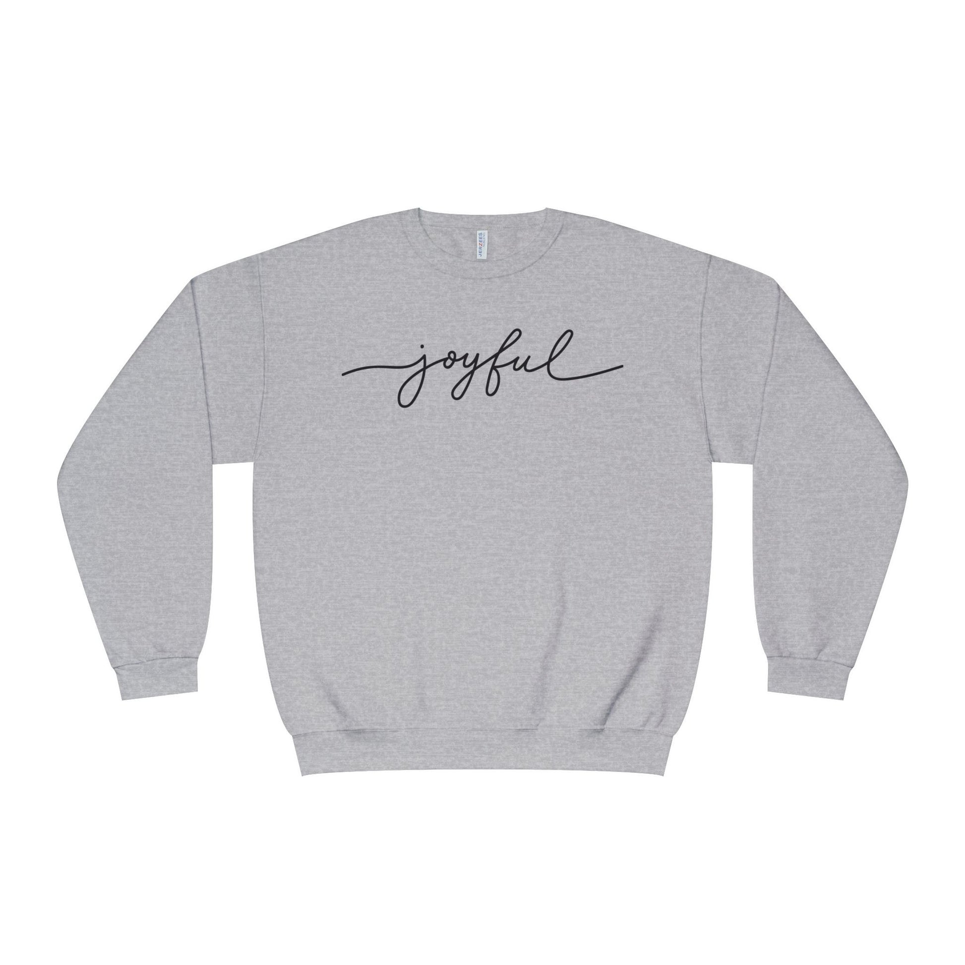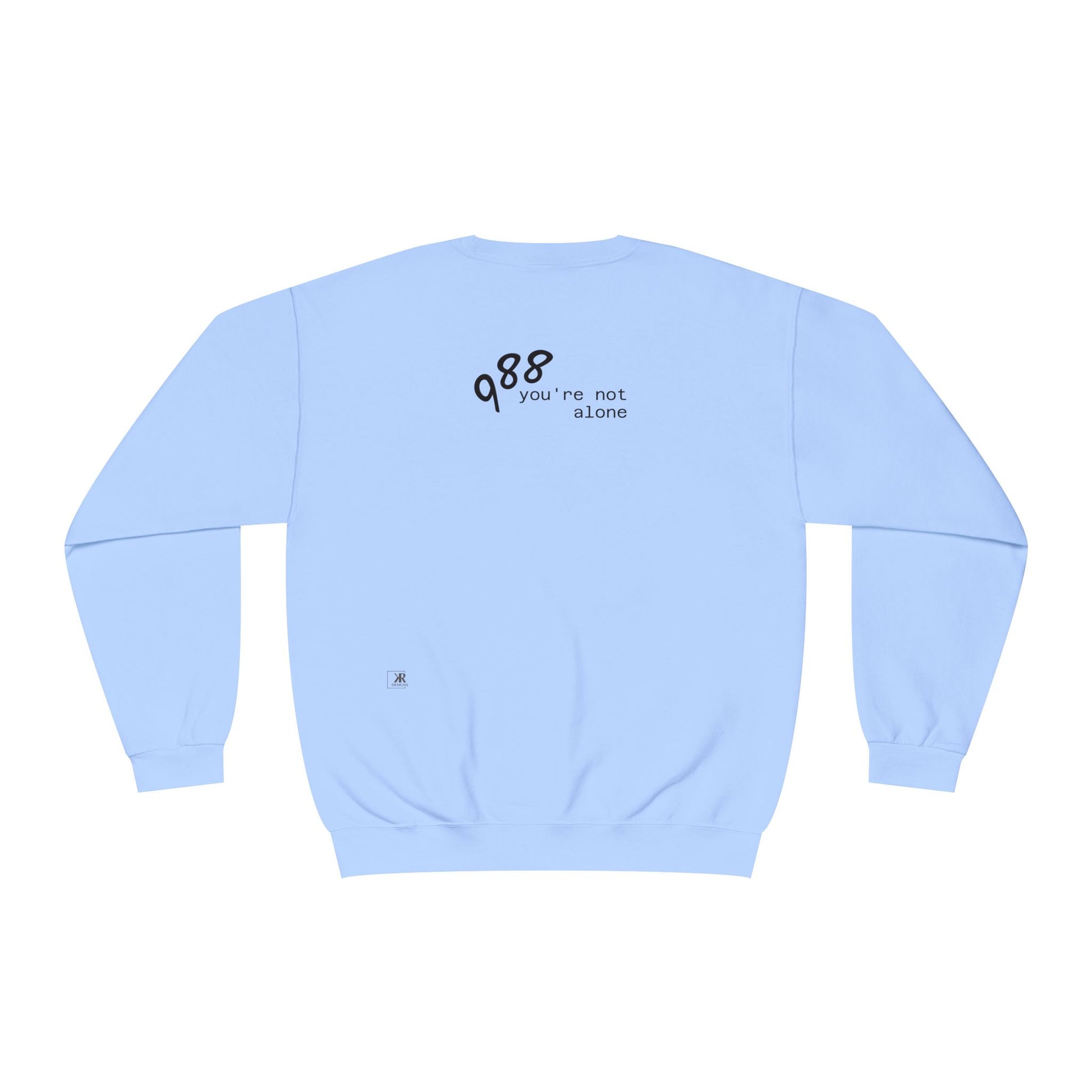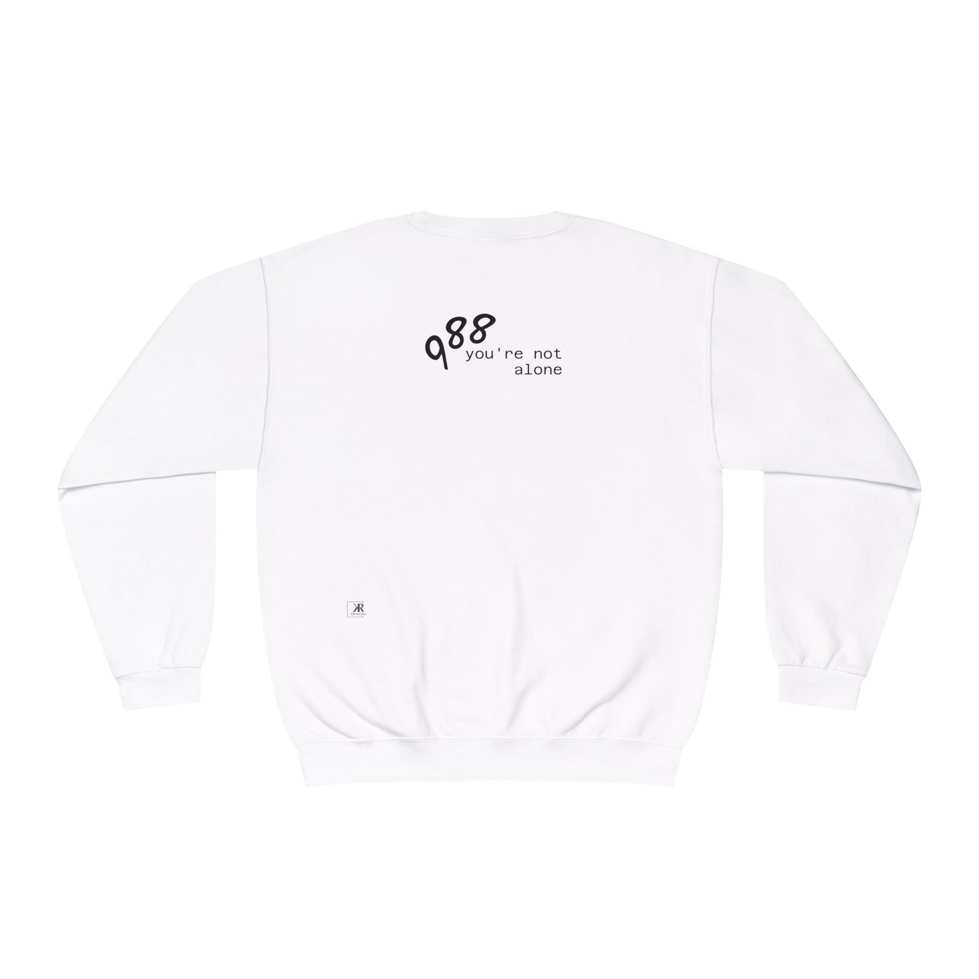 A soft, lived-in sweatshirt that speaks in gentle script. The clean white fleece carries a simple, handwritten “joyful” across the chest and a small, thoughtful back detail that reads “988 you’re not alone,” making this more than cozy layering — it’s a quiet statement of warmth and support. Slip it on for slow mornings with coffee, late-night study sessions, or volunteer shifts where comfort and calm matter. The medium-heavy NuBlend® fabric holds shape, resists shrinking, and feels substantial without weighing you down. Wear it when you want approachable style and a discreet reminder that care and connection are always within reach.