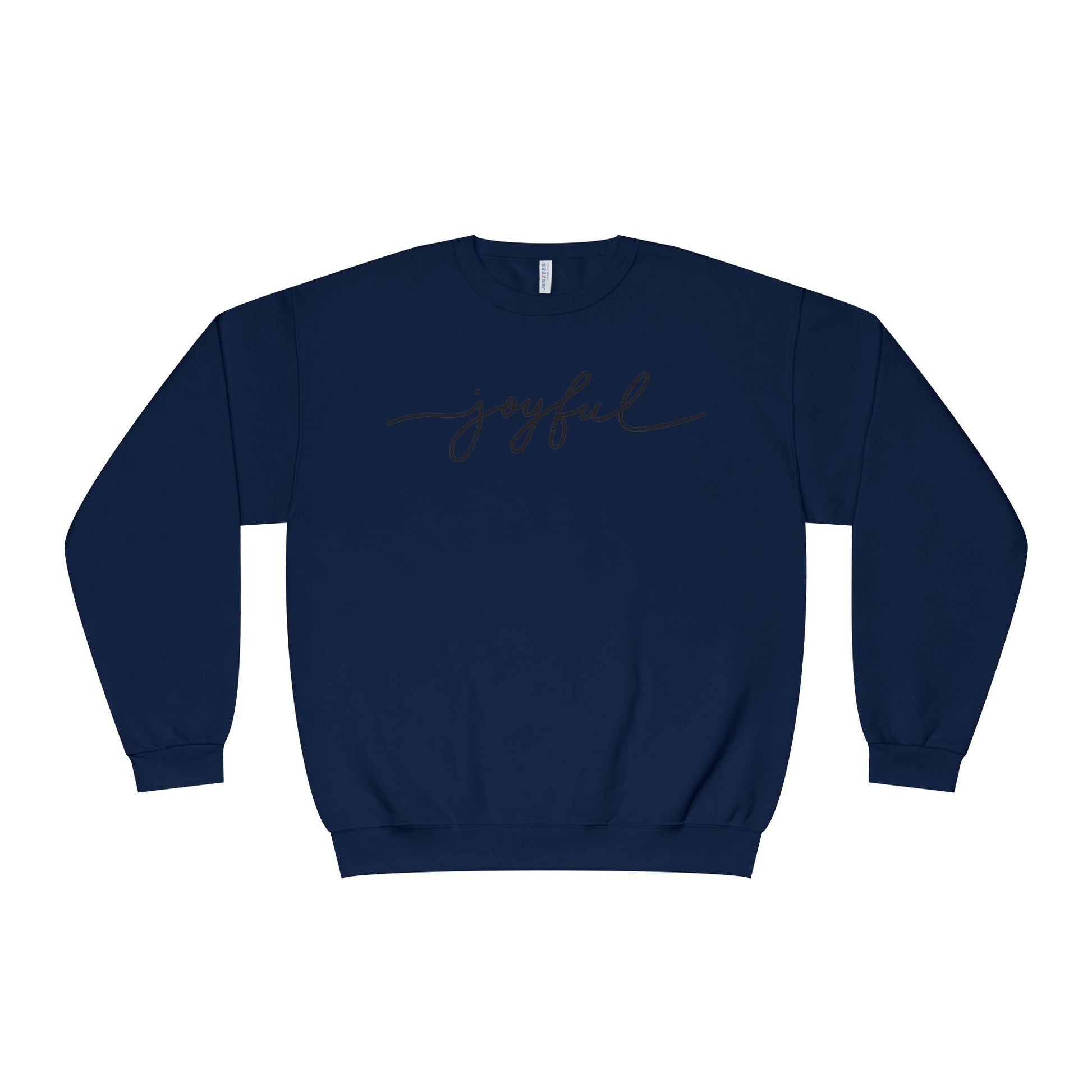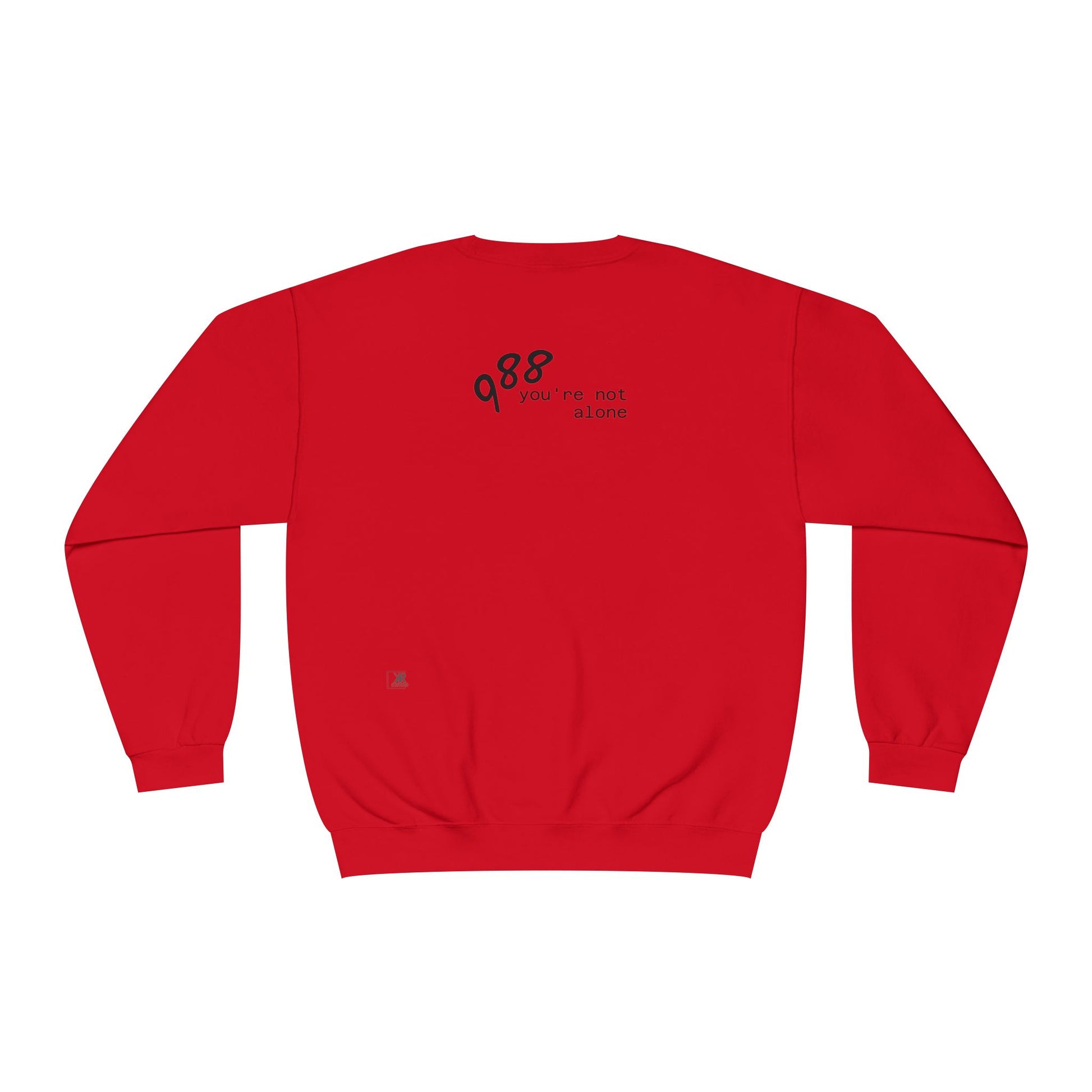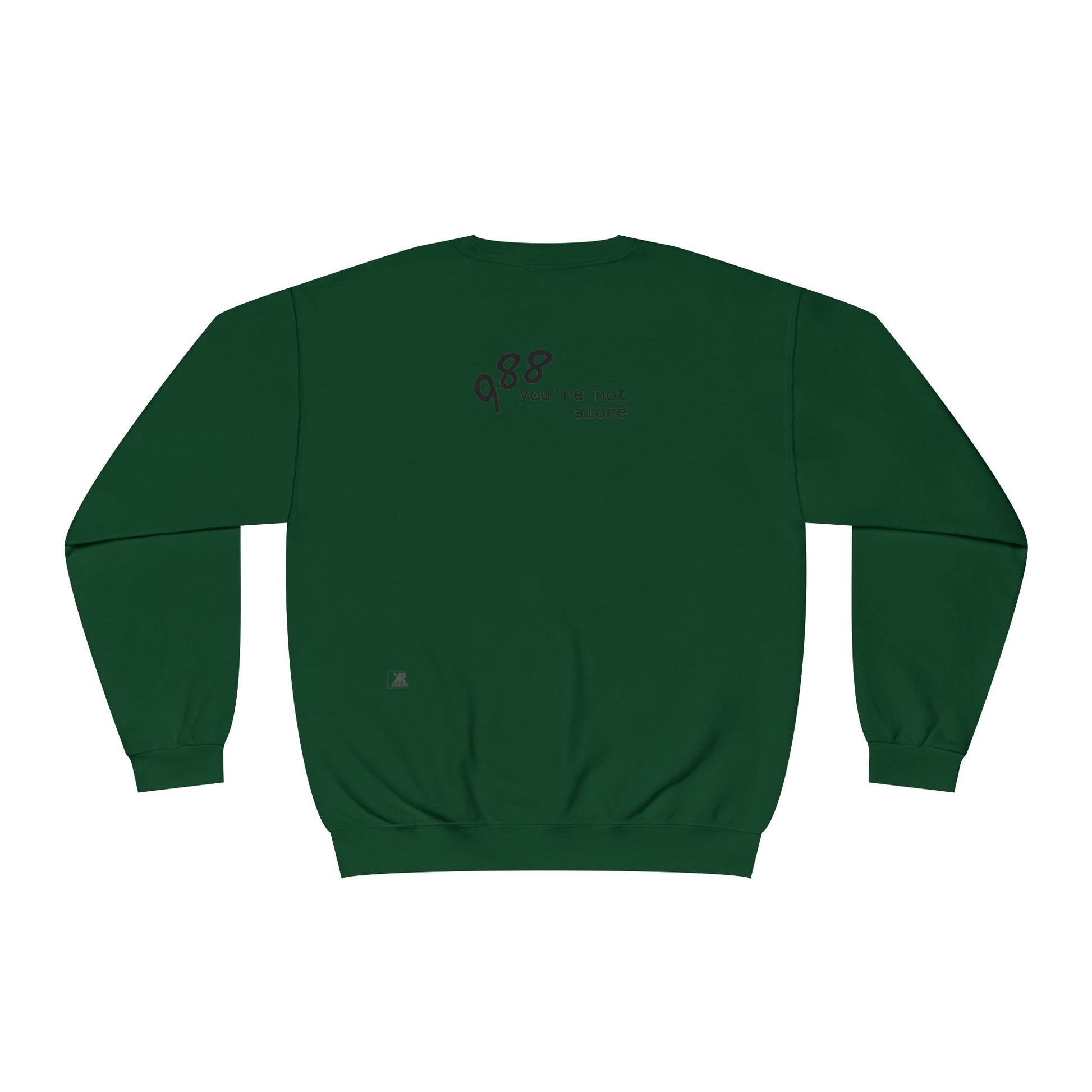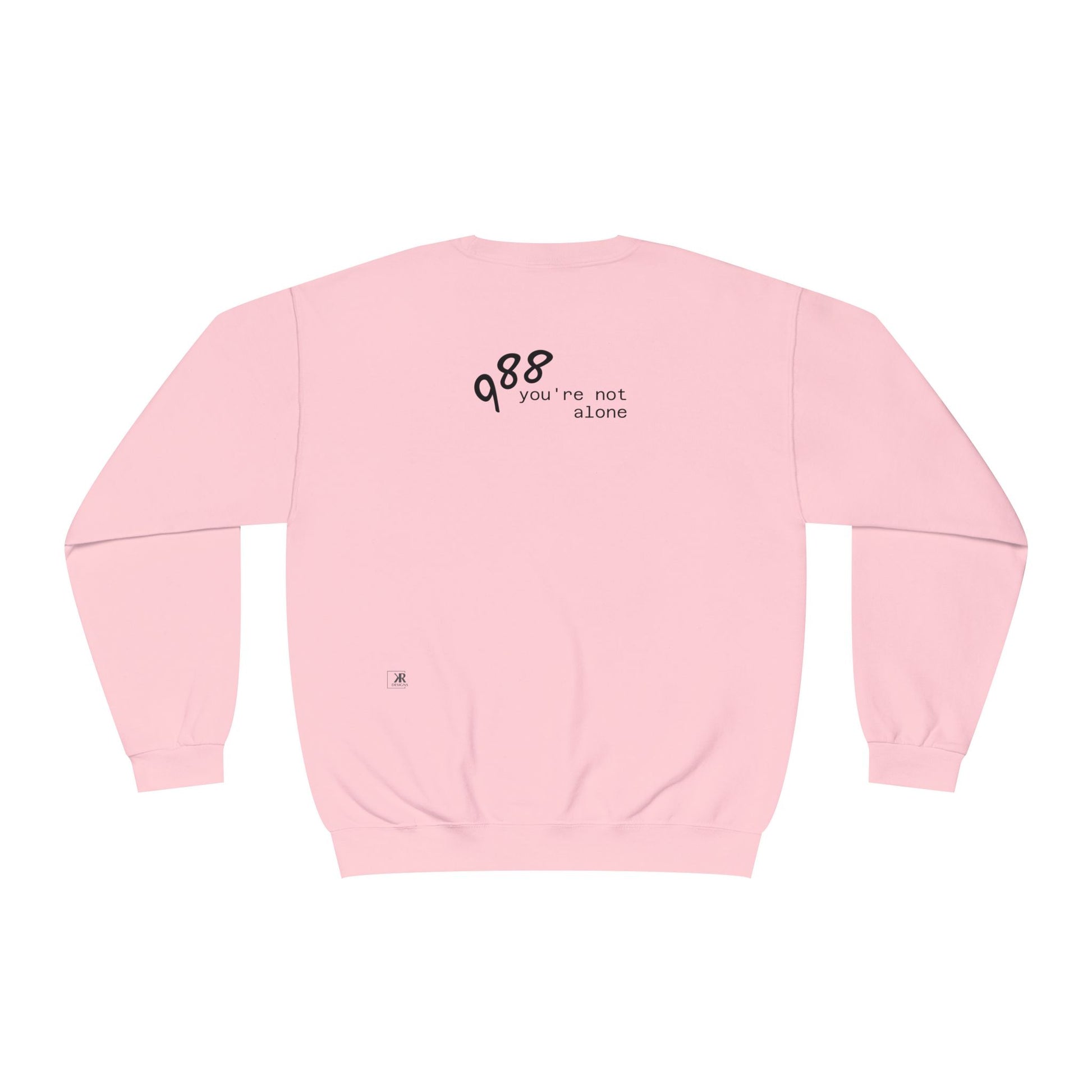 A soft, lived-in sweatshirt that speaks in gentle script. The clean white fleece carries a simple, handwritten “joyful” across the chest and a small, thoughtful back detail that reads “988 you’re not alone,” making this more than cozy layering — it’s a quiet statement of warmth and support. Slip it on for slow mornings with coffee, late-night study sessions, or volunteer shifts where comfort and calm matter. The medium-heavy NuBlend® fabric holds shape, resists shrinking, and feels substantial without weighing you down. Wear it when you want approachable style and a discreet reminder that care and connection are always within reach.
