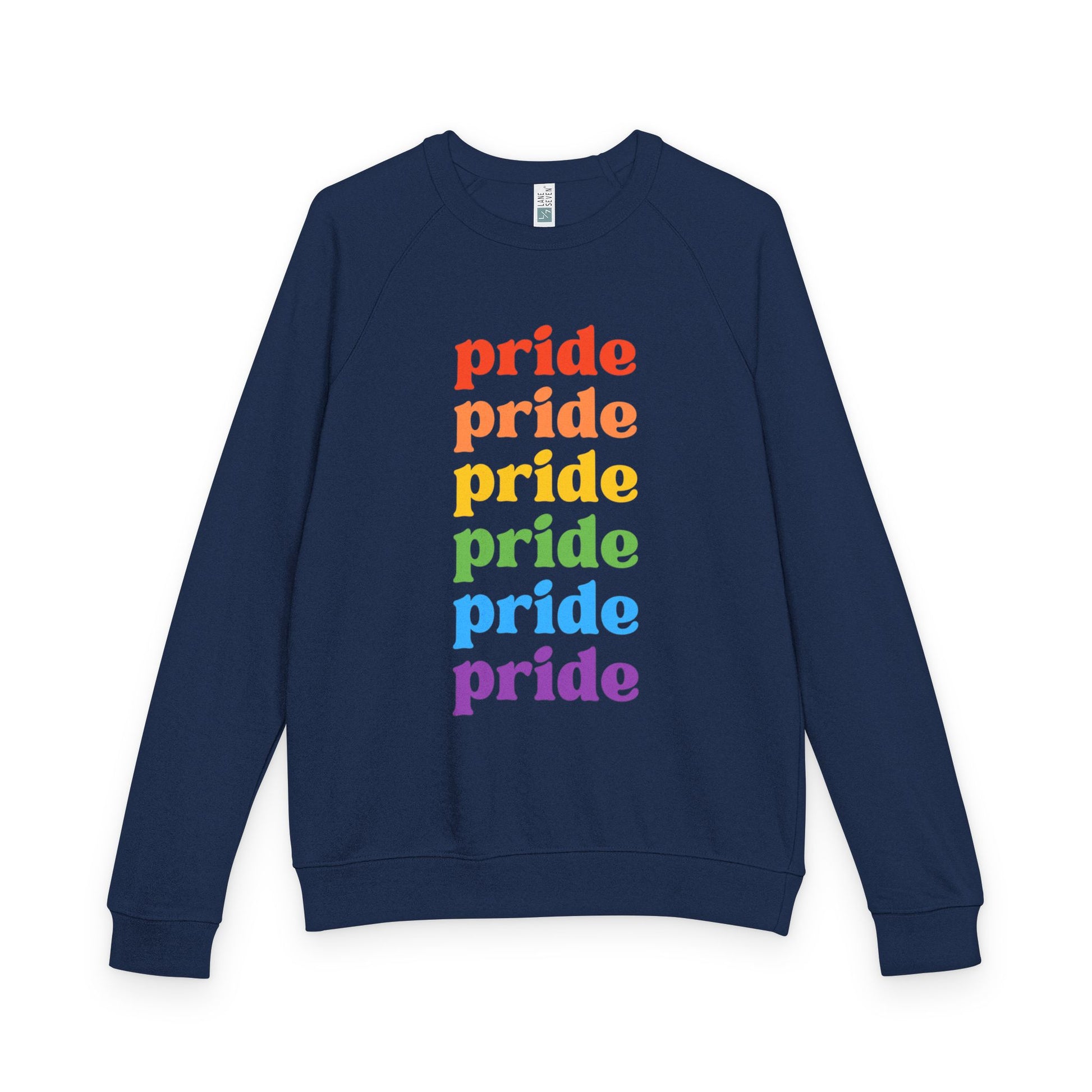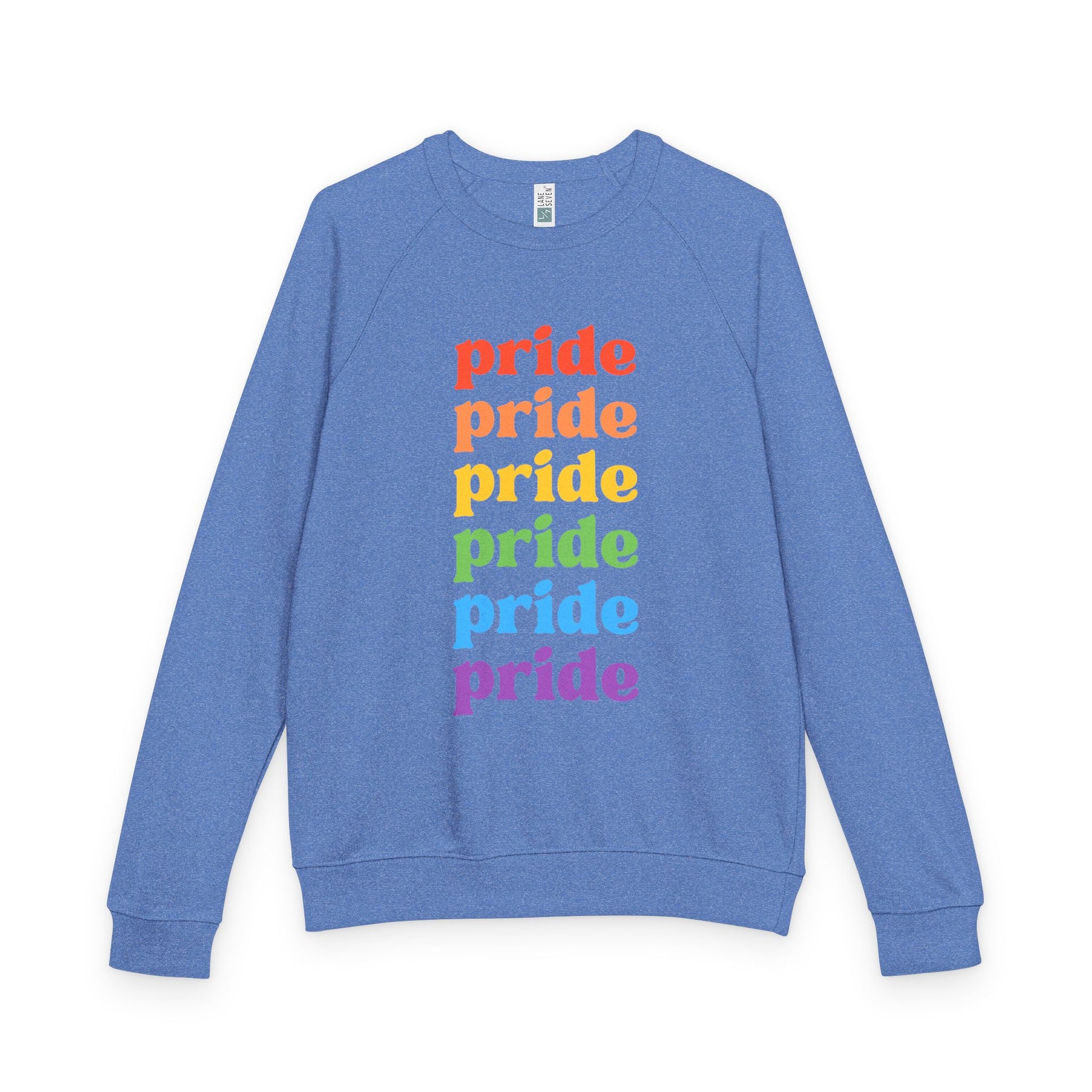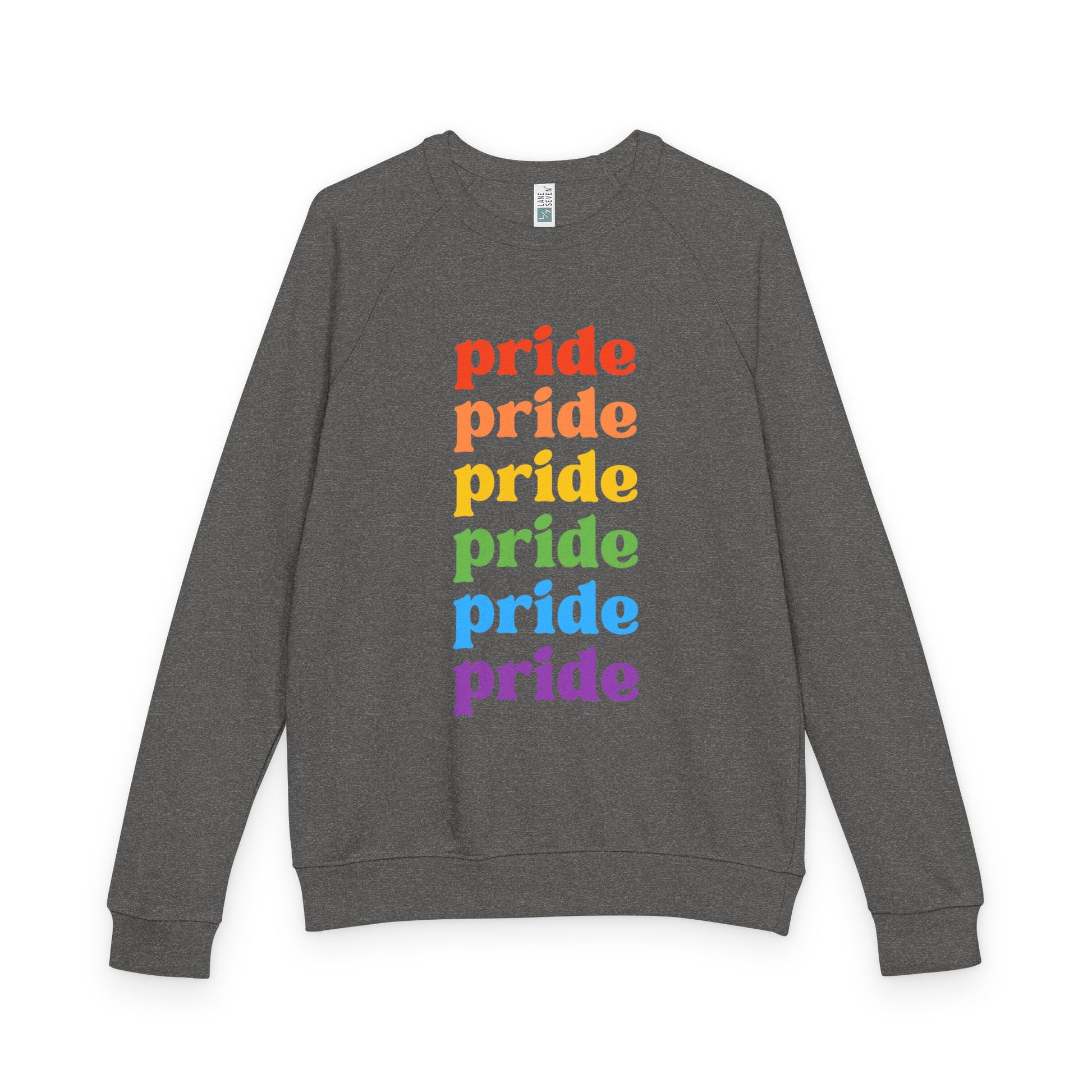 Celebrate your individuality and express your vibrant spirit with this stunning Unisex French Terry Raglan Crewneck. Designed for comfort and style, this crewneck is perfect for casual outings or cozy nights in. The bold 'pride' print in rainbow colors radiates joy and acceptance, making it an excellent choice for Pride Month and other celebrations of diversity. Whether you're attending festivals, gatherings with friends, or simply lounging at home, this crewneck brings a sense of warmth and community to your wardrobe. It’s a perfect gift for anyone who values self-expression, from allies to members of the LGBTQ+ community. Make a statement wherever you go with this stylish and comfortable piece!