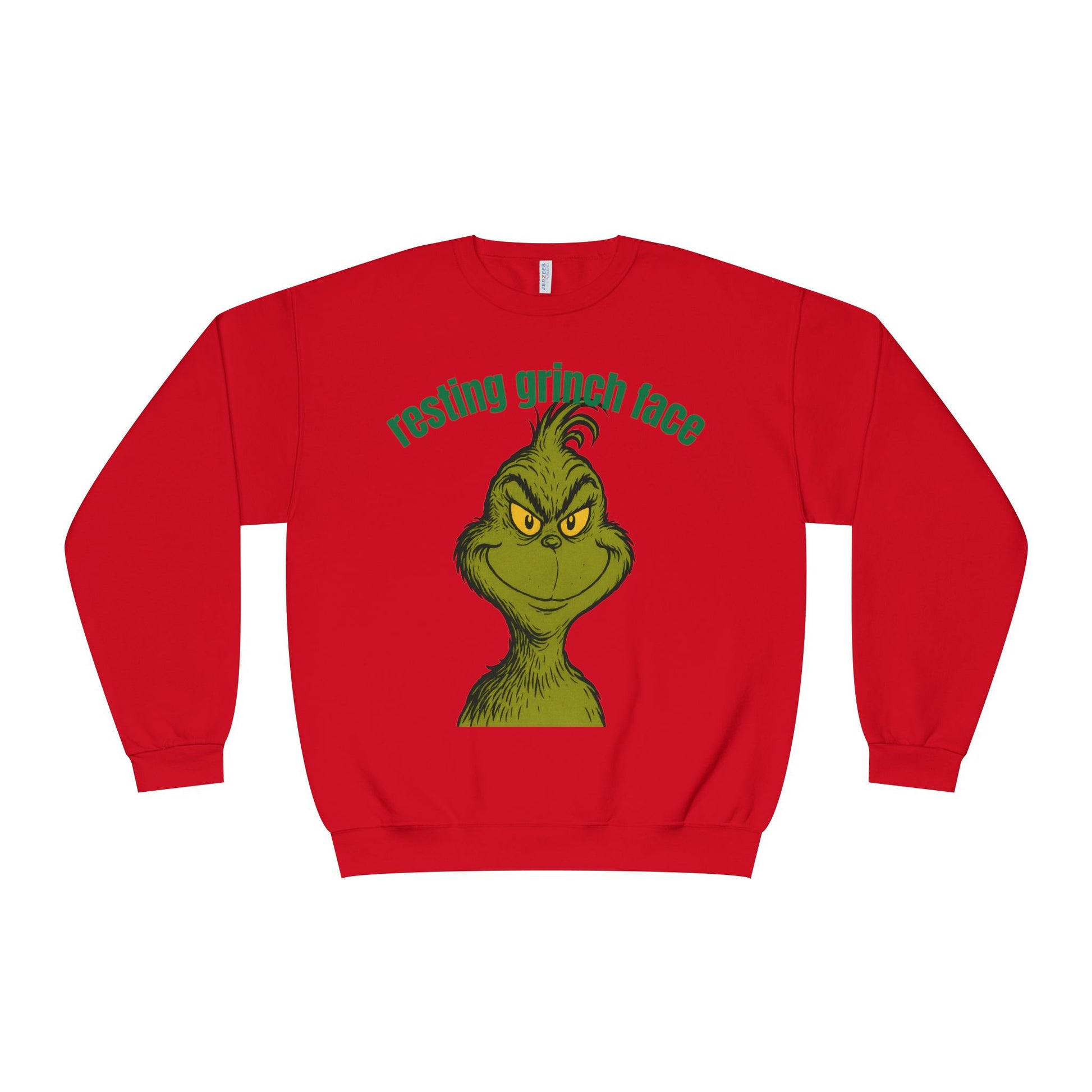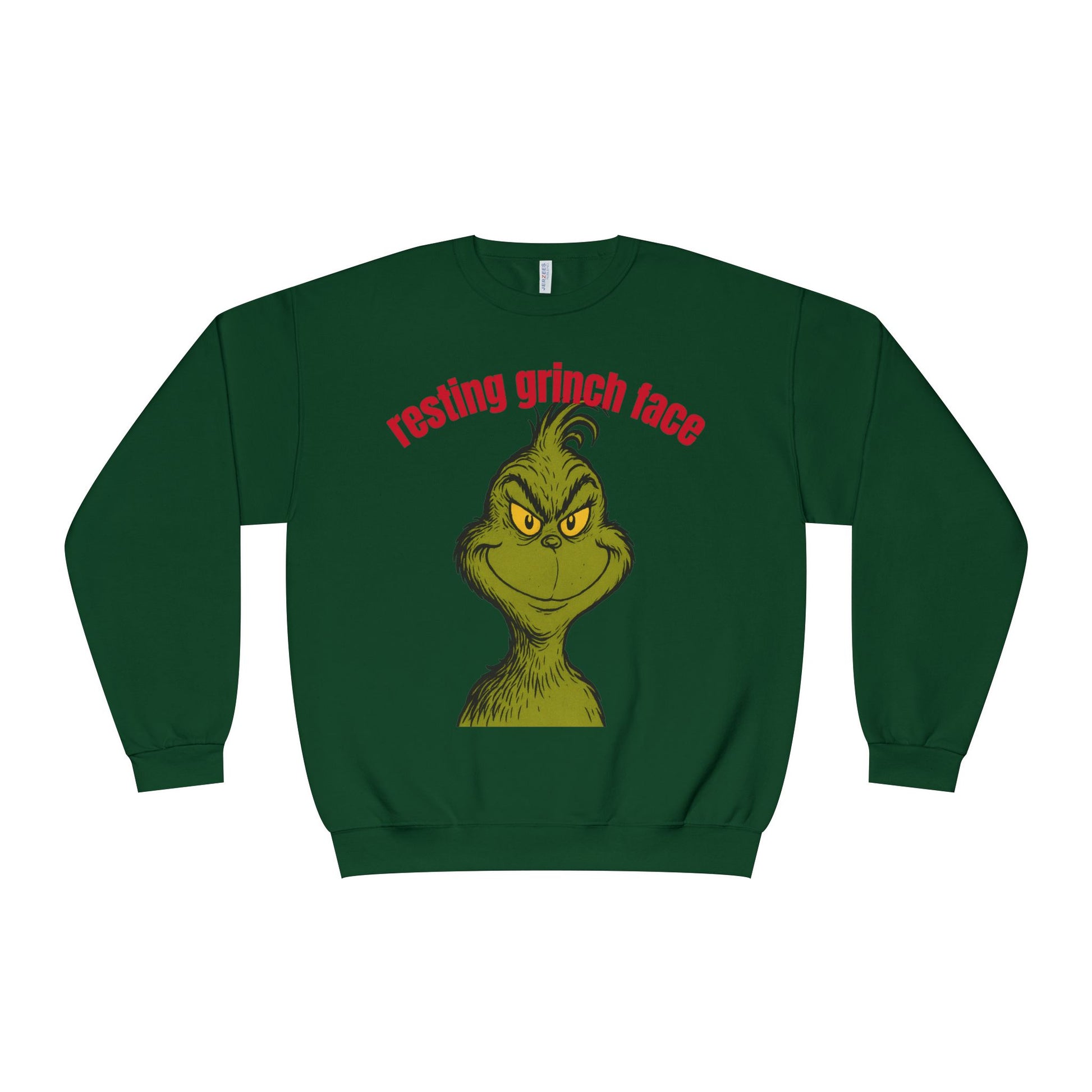 Soft, cozy, and a little mischievous — this crewneck brings a wink of holiday sass to cold mornings. The plush midweight fleece hugs you without feeling bulky, while the classic cut moves easily from lazy couch days to quick outings. A bold, familiar green face and cheeky red lettering sit front-and-center, giving off playful, slightly grumpy holiday energy. Wear it when you want to lean into seasonal humor, curl up with hot chocolate, or show your festive mood with a grin that’s more snark than sugar. The clean back keeps the look simple so the graphic stays the star.