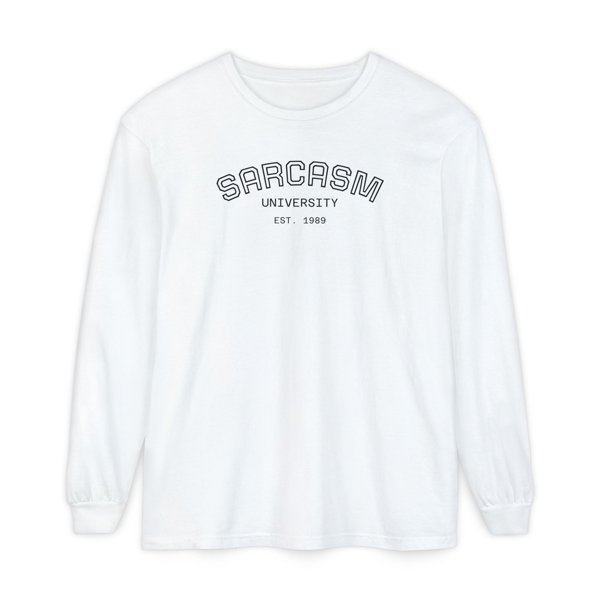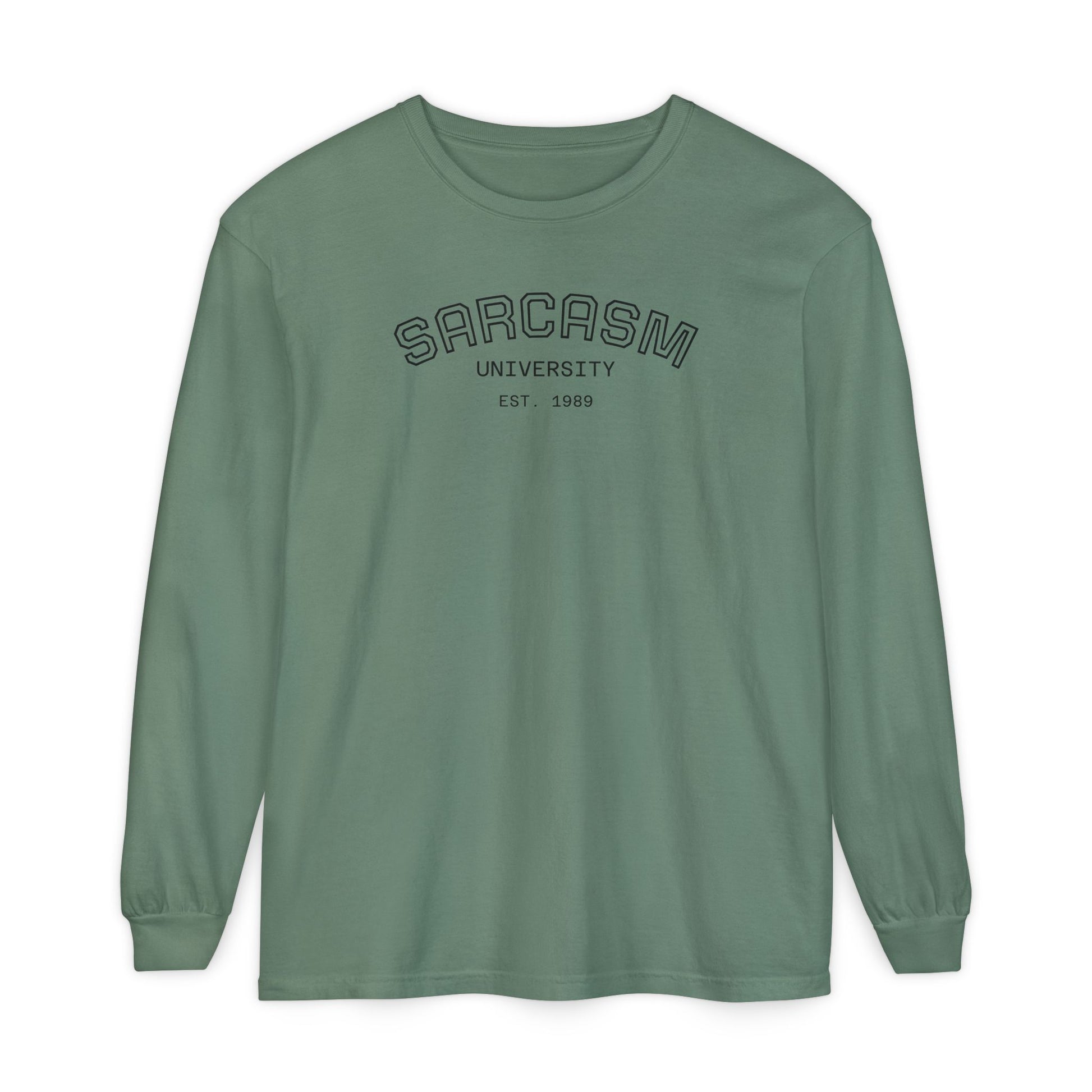 Show off your higher education in sarcasm with our “Sarcasm University” long sleeve shirt — where class is always in session and the dress code is effortlessly cool.